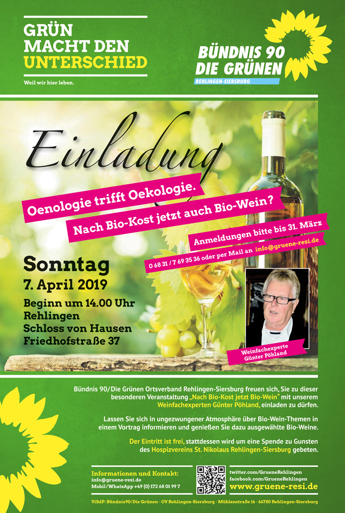 Bündnis 90/Die Grünen Ortsverband Rehlingen-Siersburg freuen sich, Sie zu dieser besonderen Veranstaltung, einladen zu dürfen.